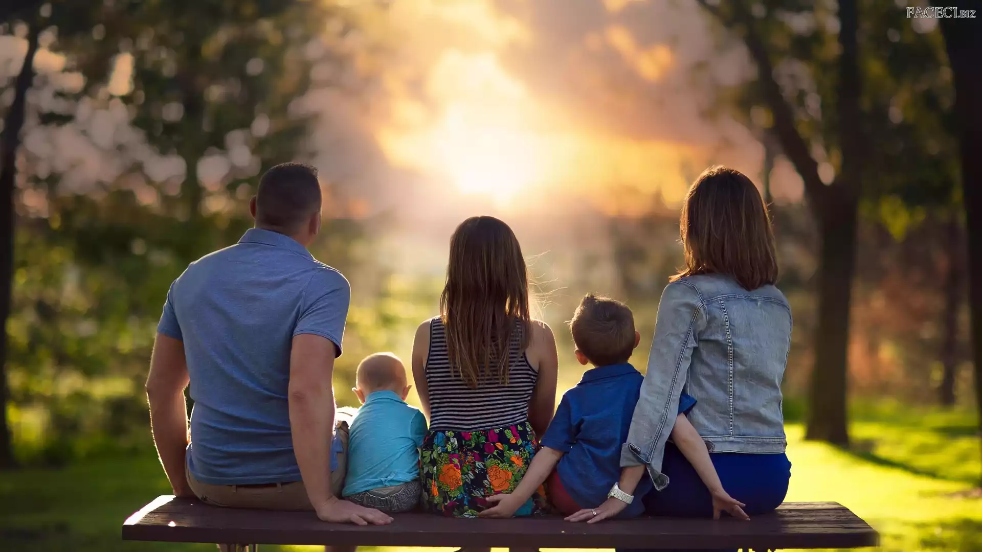 Dziecko, Mężczyzna, Zachód słońca, Ławka, Kobieta, Rodzina - faceci.biz